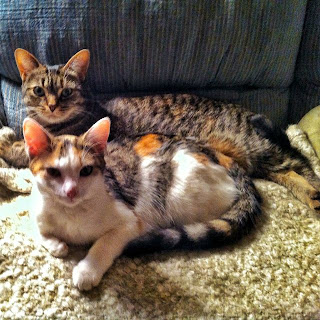 Honestly, it was the shortest acclimation period I’ve ever seen. Fred was miffy for all of an evening. Then Ruby, as we decided to rename the newest member of our household, pinned her down and cleaned around Fred’s ears. By the end of the second day, they were sleeping side by side on the sofa.